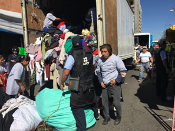 La inspección se realizó en alrededor de 300 puestos fijos y semifijos dedicados principalmente a la venta de ropa de paca y artículos de piratería situados en el interior, exterior y banquetas de los mercados, dando como resultado que la mercancía revisada fue introducida ilegalmente al país.