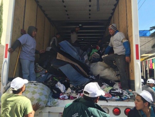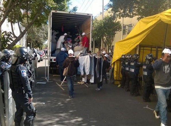 Los elementos de la Secretaría de Seguridad Pública del Distrito Federal usaron camiones de mudanza para trasladar las prendas de vestir que fueron decomisadas, así como zapatos y mochilas.