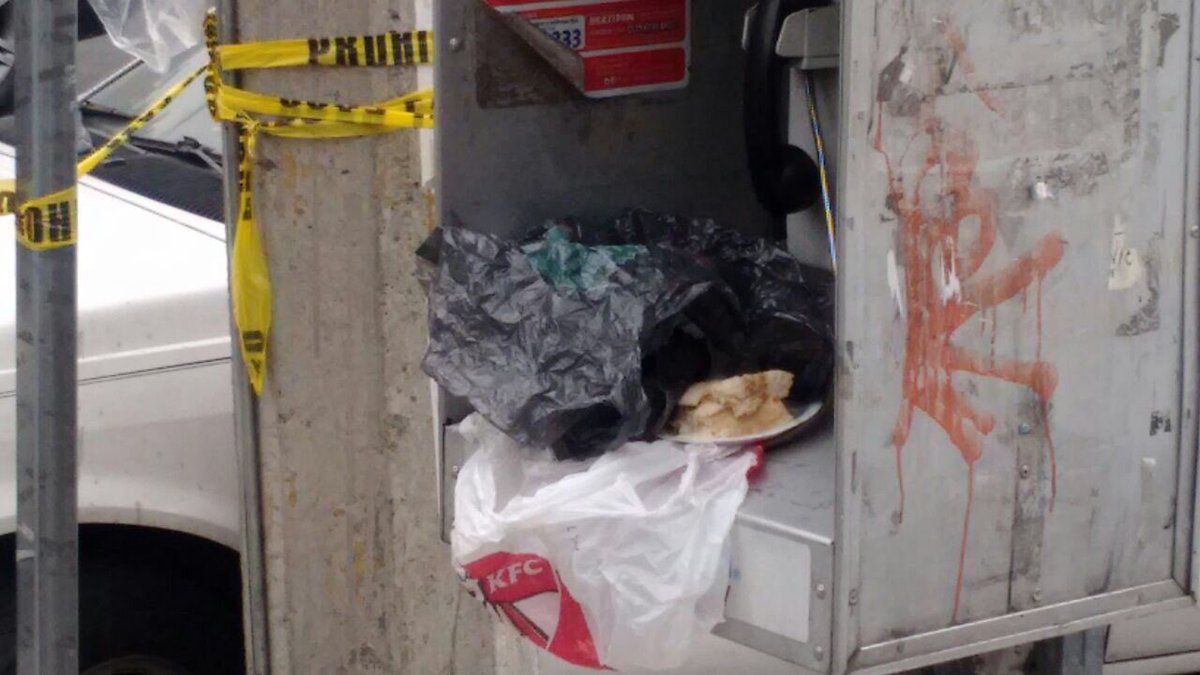 Sobre el Eje 5 Sur encontraron una bolsa con un cráneo junto con un pedazo de pastel al interior de una caseta telefónica