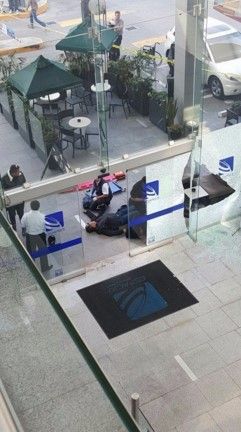 Alrededor de tres sujetos armados entraron a la plaza comercial para asaltar a un cuentahabiente, hecho que provocó un enfrentamiento con su guardaespaldas.
