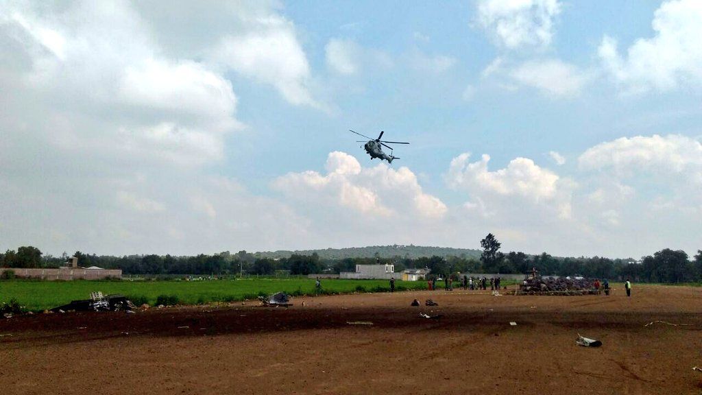 A las 11:10 h, cerca de la base aérea de Santa Lucía, en Tecámac, Estado de México, dos aeronaves militares se estrellaron entre sí para luego desplomarse.