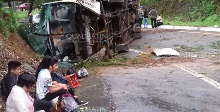 Nueve personas lesionadas es el saldo preliminar del accidente protagonizado por un autobús de pasajeros que cayó de 25 metros de altura en el viaducto a Zirahuén de la carretera Pátzcuaro-Morelia.
