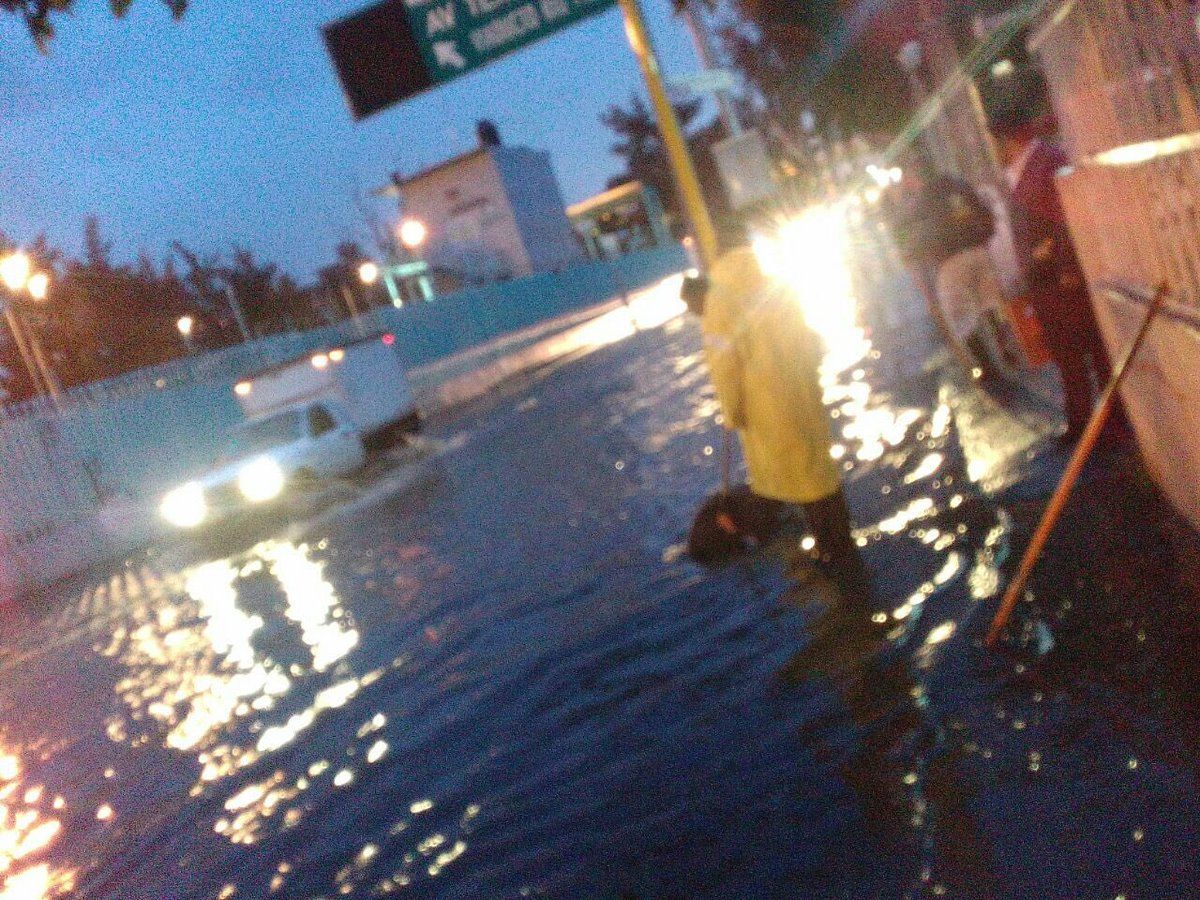 Indicó que personal de Aguas de la Ciudad de México, de Protección Civil y personal de la delegación atiende el aumento del nivel de agua en la calle José Peón, en la Colonia Santa Martha Acatitla.