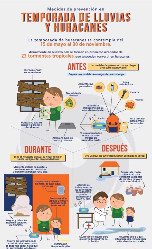Se recomienda a la población extremar precauciones en ríos y arroyos de respuesta rápida ante posibles desbordamientos, así como en zonas urbanas debido a la posibilidad de encharcamientos y/o inundaciones pluviales y fluviales a causa de la acumulación y la continuidad de las lluvias, así como por alta probabilidad de deslaves o derrumbes, colapso de puentes y cortes carreteros.
