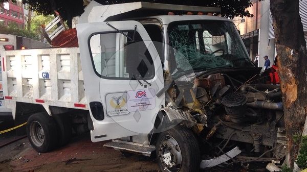 Un camión de volteo del Gobierno del Distrito Federal (GDF) y una camioneta de valores de la empresa Cometra chocaron cuando circulaban sobre avenida Insurgentes Sur y la calle de Vermont en el perímetro de la colonia Napolés de la delegación Benito Juárez.