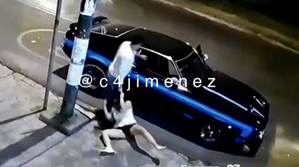 Un sujeto fue captado cuando arrojó de su auto y golpeó a una mujer sobre Calzada de las Bombas para después subirla de los cabellos nuevamente al Mustang