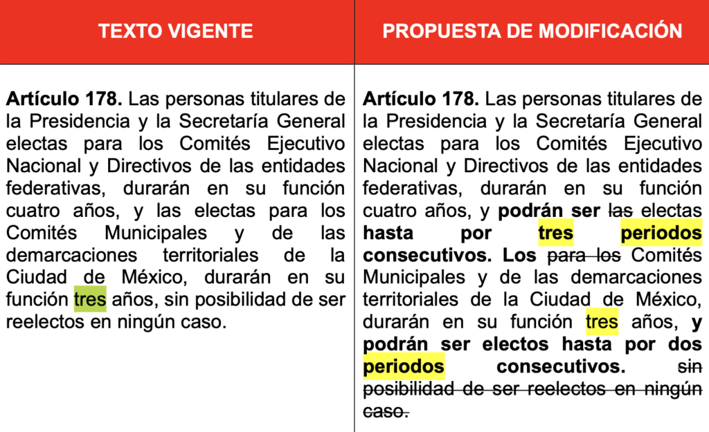 En el cambio de estatutos se estipula que el dirigente nacional y el titular de la Secretaría General podrán reelegirse hasta por tres ocasiones consecutivas.