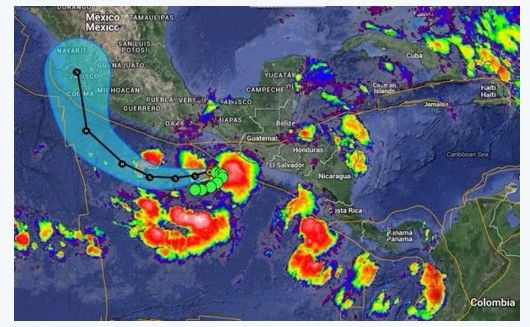 La alerta azul se activó en su fase de acercamiento para Michoacán, Colima, Jalisco y Nayarit así como en el resto de Guerrero; y de alejamiento para el suroeste de Campeche.