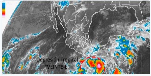El Sistema Nacional de Protección Civil (Sinaproc) activó las alertas verde y azul en 11 estados de la República, ante la presencia de la depresión tropical 20-E, que esta noche podría convertirse en la tormenta tropical Patricia.