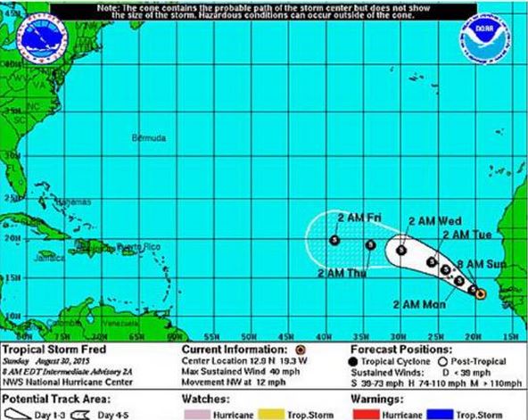 Alerta por la tormenta tropical Fred - fred-2Abundó que Fred, ubicado en el Océano Atlántico, a siete mil 255 kilómetros al este de las costas de Quintana Roo, podría desplazarse hacia el noroeste propiciando nubosidad, por lo que llamó a extremar precauciones a la población en general en esa zona.