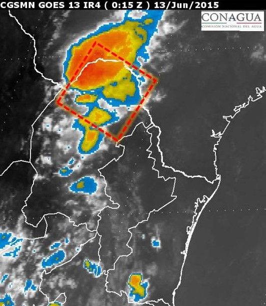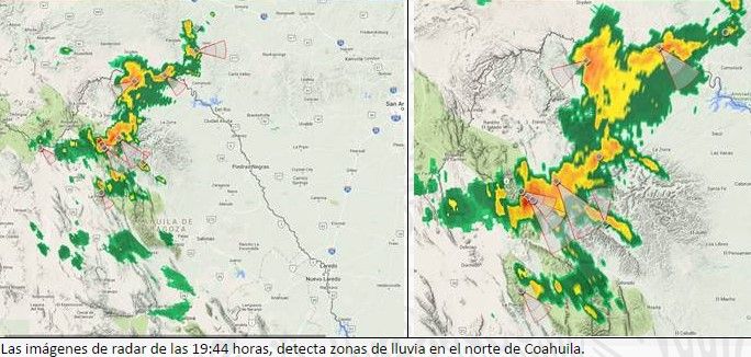 “La imagen de satélite detecta el desarrollo convectivo en el norte de Coahuila con nubosidad densa, potencial de lluvia muy fuerte, actividad eléctrica, caída de granizo y vientos fuertes con posibilidad de torbellinos o tornados durante las próximas horas”, dijo la CONAGUA en un comunicado.