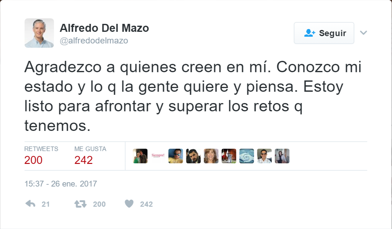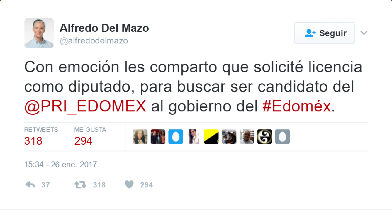 Alfredo del Mazo candidato del PRI al gobierno del Edomex - Tuit-Alfredo-del-Mazo-2