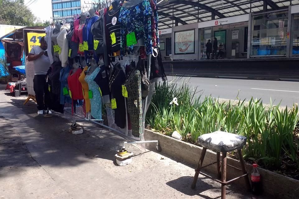 Ahora se pueden encontrar ropa, calzado, dulces, accesorios, gafas y pupilentes, obstruyendo el paso peatonal de la zona, donde las jardineras que la delegación instaló para inhibir su regreso ocasionó la reduccion del espacio de la acera.
