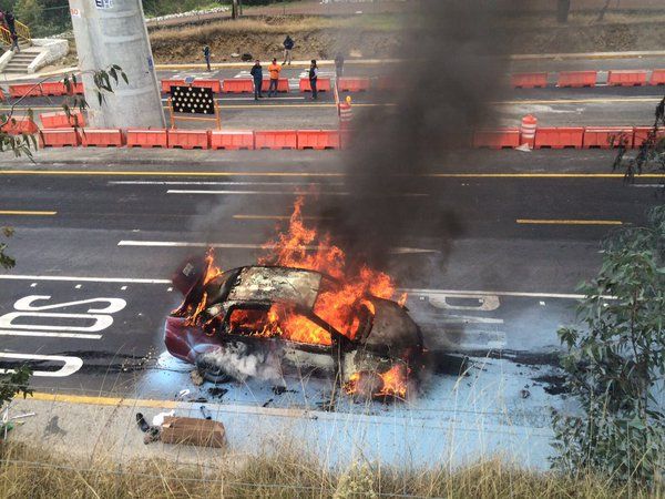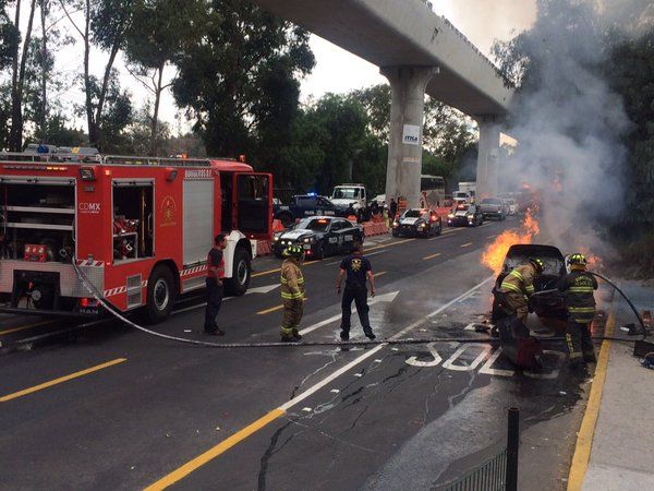Este miércoles, se registró el incendio de un vehículo en la autopista México-Cuernavaca.