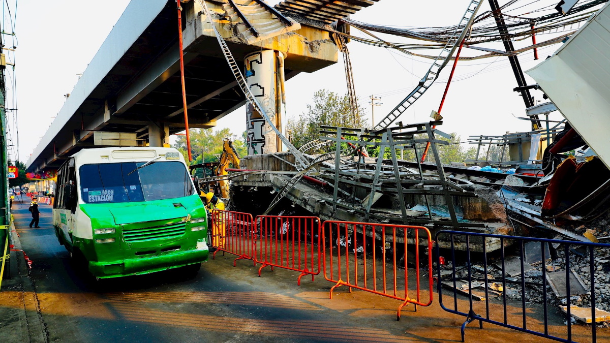 Un microbús circula por el lugar donde colapsó la Línea 12 del Metro. Foto de EFE/Carlos Ramírez