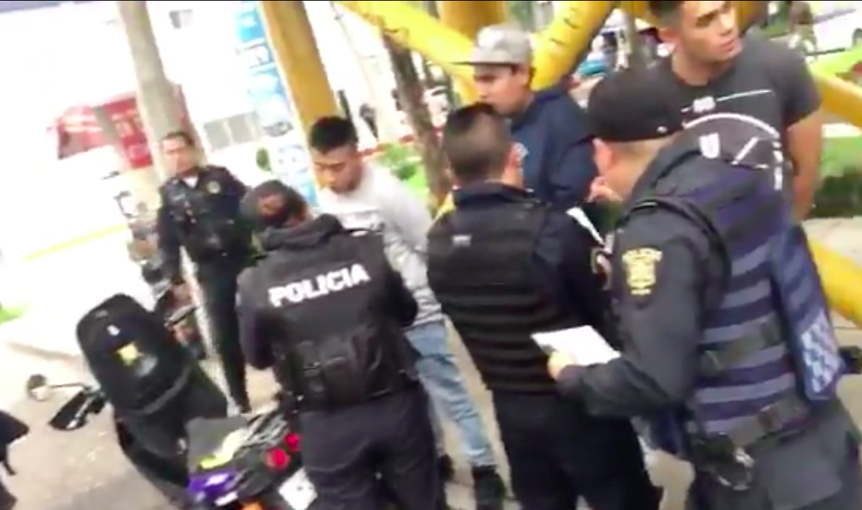 Los individuos que viajaban a bordo de una motocicleta fueron detenidos por las autoridades en las calles de Jesús Carranza y Tenochtitlán de la colonia Tepito, en la delegación Cuauhtémoc.