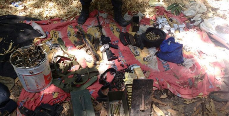 Como resultado de los operativos de seguridad implementados por la Policía Federal (PF), elementos de la División de Fuerzas Federales aseguraron un campamento presuntamente empleado por un grupo delictivo, como almacén de armas de alto poder, más de dos mil cartuchos y vehículos con reporte de robo.