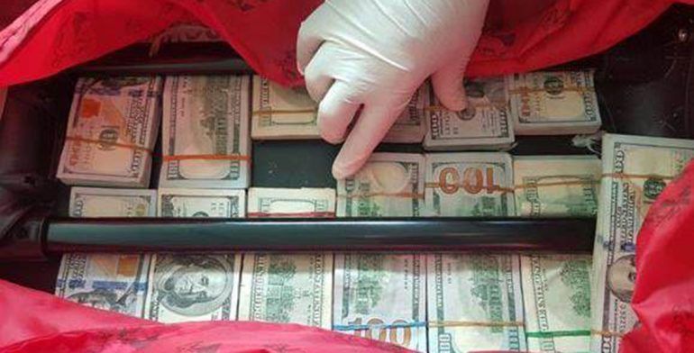 Al efectuar la inspección de la maleta, en el fondo se encontraron, ocultos debajo del forro, 12 fajos de billetes en moneda extranjera, que contenían en total 570 mil dólares estadounidenses, equivalentes a más de 11 millones de pesos.