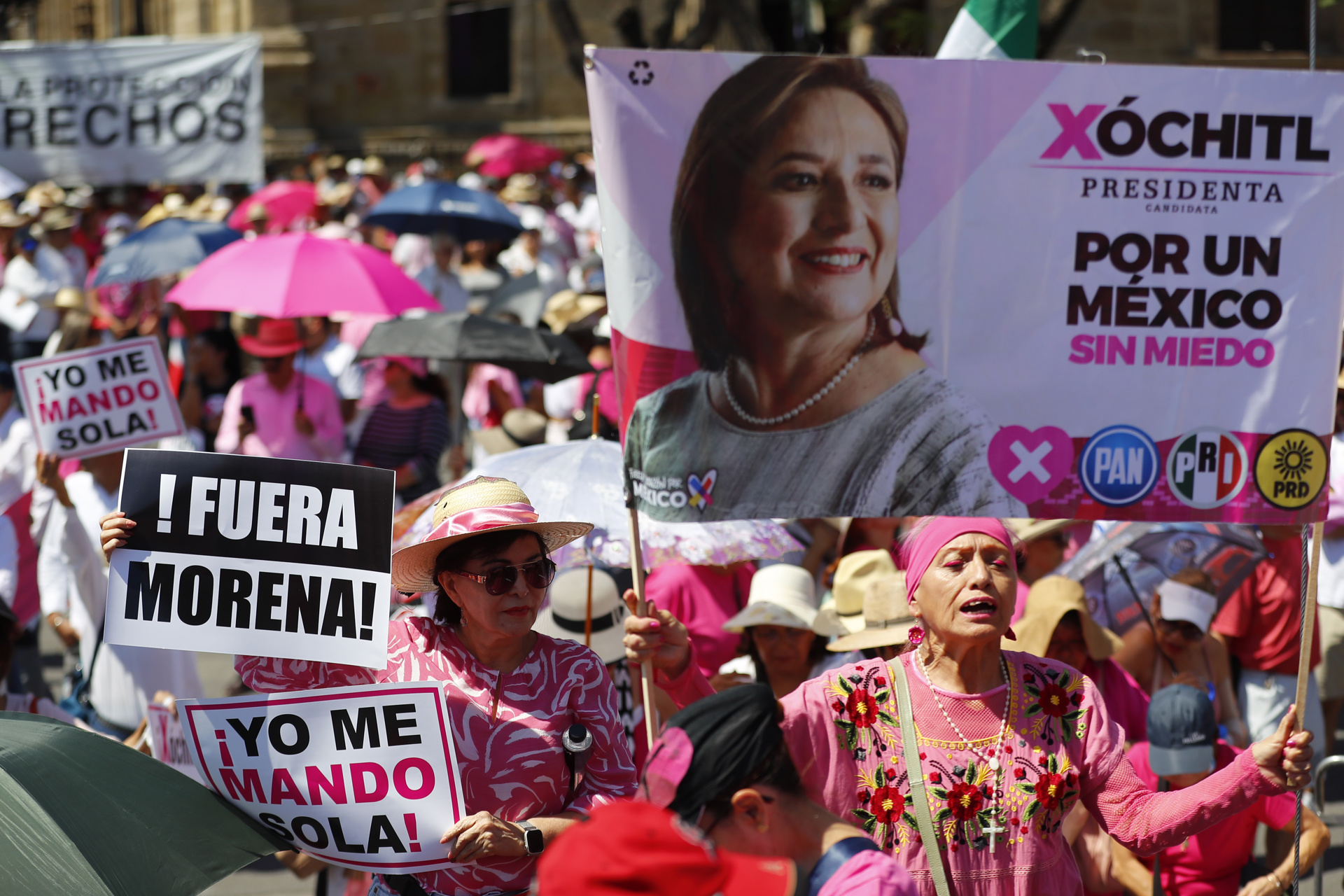 Bajo las plataformas UNID@S y #MareaRosa, 144 organizaciones convocaron a la ciudadanía y al frente opositor Fuerza y Corazón por México a la manifestación, la tercera desde 2022 de este movimiento