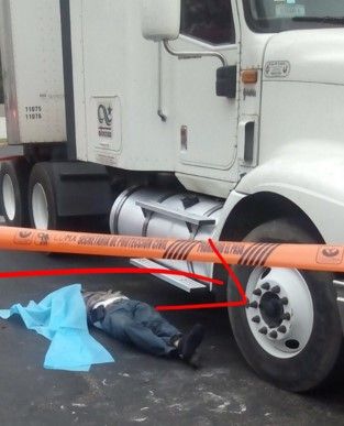 Un tráiler blanco atropelló a un hombre de la tercera edad que vestía un suéter café, pantalón azul y zapatos negros.