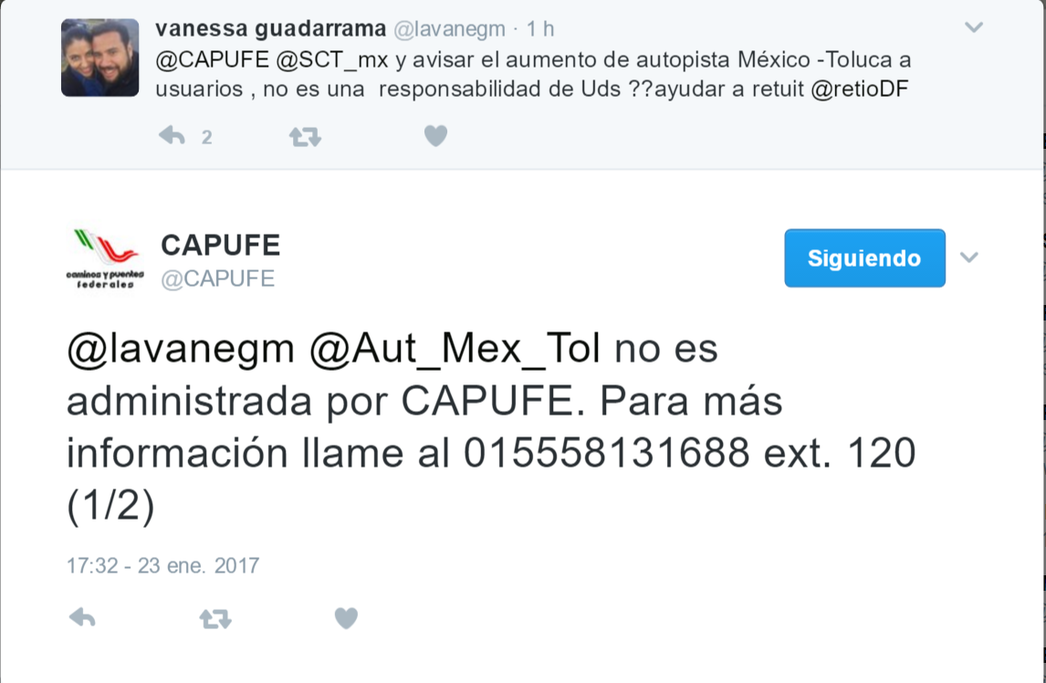 Debido a los diversos comentarios recibidos en redes sociales, Caminos y Puentes Federales (CAPUFE) informó a través de su cuenta de Twitter, que dicha autopista no es administrada por CAPUFE.