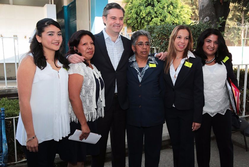 En su recorrido de esta mañana, Aurelio Nuño Mayer hizo un reconocimiento a las madres de México, e informó que, para apoyarlas, se implementan diversas medidas, tales como que en el próximo ciclo se incrementará la actividad de tres a cuatro horas en Educación Preescolar; en las estancias infantiles de Sedesol se impartirá ese nivel escolar, y se impulsarán las escuelas de tiempo completo, que en esta administración pasaron de 7 mil a 25 mil.