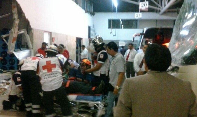 El saldo del choque contra el área de taquillas de ADO fue de un empleado de la empresa herido, quien fue atendido posteriormente por la Cruz Roja.