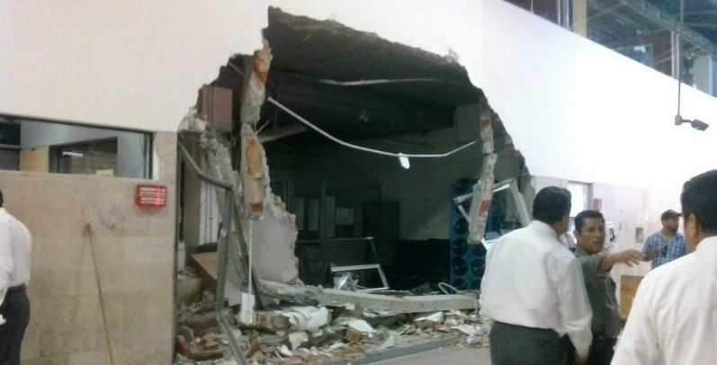 Boquete en el muro que dejó el camion de ADO. Foto de Internet