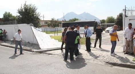 En Monterrey una barda fue derribada por un camión en la escuela primaria Jonás García, ubicada en el fraccionamiento Coyoacá, ubicado en la avenida Adolfo Ruiz Cortines. El autobús que salía con niños a un paseo escolar, dejó a siete madres de familia heridas.