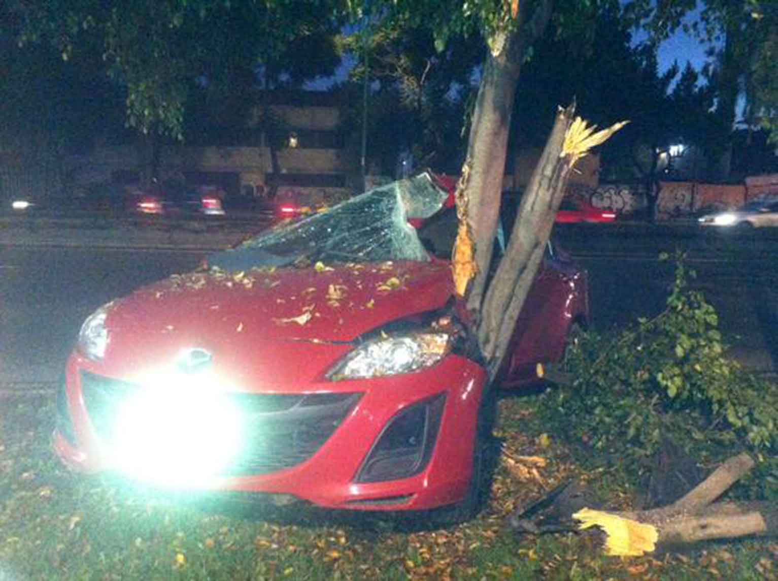 Choca contra un árbol al esquivar cadáver en Viaducto - mazda-en-viaducto