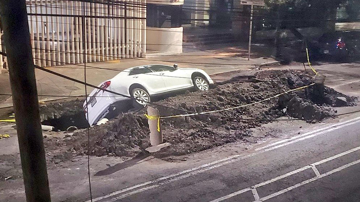 Un suceso similar ocurrió el lunes pero en la alcaldía Milpa Alta, donde un taxi cayó en un socavón de aproximadamente dos metros de profundidad.