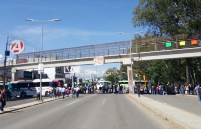 El bloqueo lo realizan con cinco camiones del transporte público que fueron tomados en calles de la ciudad de Oaxaca.