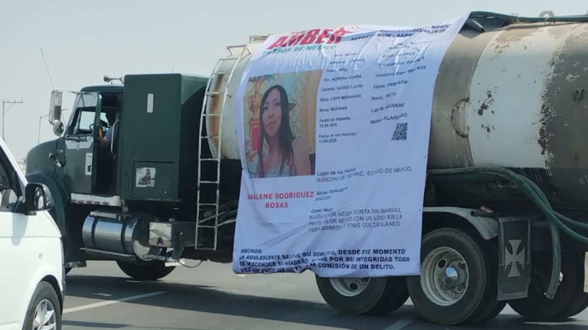 Colocaron camiones de carga atravesados sobre la vía y, sobre ellos, una manta con la ficha de localización de Marlene, como forma de visibilizar su exigencia y pedir que se intensifique la búsqueda.