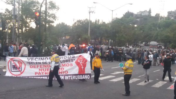 Pese a que en la mayoría de las mencionadas vialidades, ubicadas en el poniente de la ciudad, únicamente se registra presencia de granaderos, la Avenida de las Torres presentó momentáneamente un bloqueo en ambos sentidos por parte de vecinos inconformes que protestaban en contra del tren México-Toluca, a la altura de la central de camiones de Observatorio.