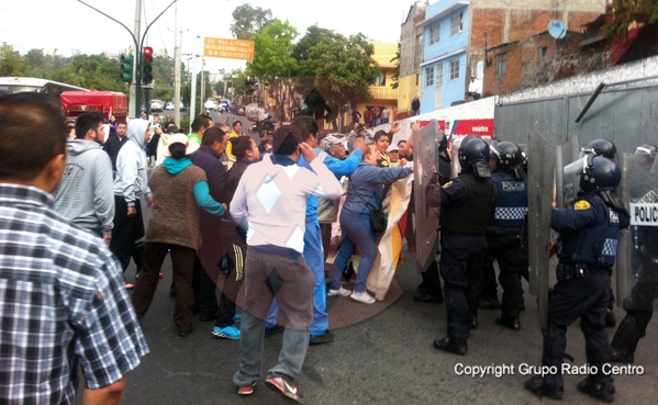 En la vialidad, elementos de Tránsito realizaron cortes a la circulación, mientras que algunos inconformes se enfrentaron con los granaderos en el lugar.