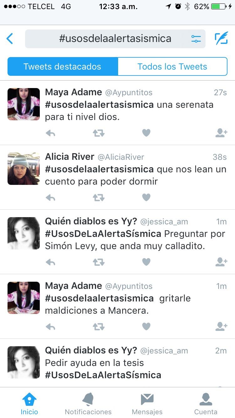 Mientras tu me ignoras la chava de la #alertasismica me lleva serenata a media noche — Lo más divertido!! (@elcatenachomx) diciembre 9, 2015