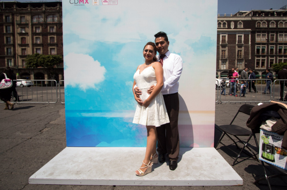 En la plancha del Zócalo las parejas aplauden, toman sidra, y ponen atención por si escuchan su nombre entre quienes salieron ganadores en la rifa de viajes a Acapulco, Cancún, Zihuatanejo y otros destinos de playa hermosos más.