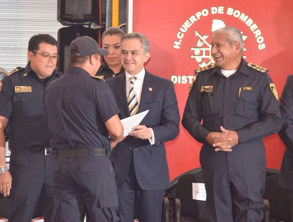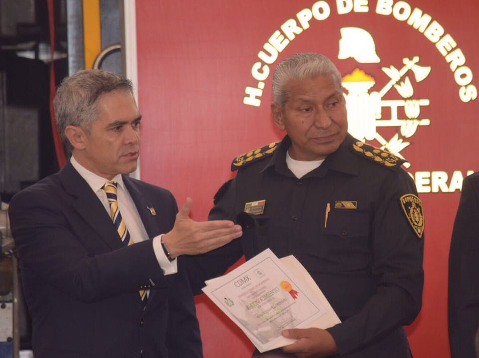 Miguel Ángel Mancera reconoció la labor de los bomberos en la Ciudad de México, específicamente la de Raúl Esquivel, “jefe vulcano”