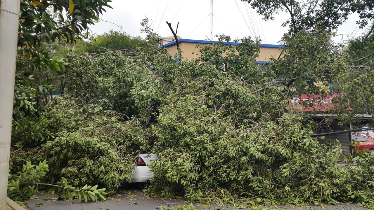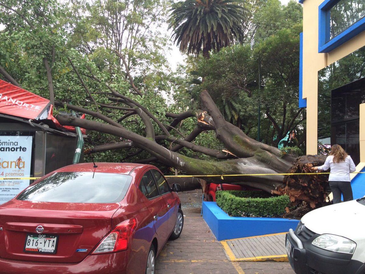Un árbol de gran tamaño cayó esta mañana en el cruce de las avenidas Thiers y Gutenberg, en la colonia Anzures, en la delegación Miguel Hidalgo, causando daños en al menos cuatro automóviles así como un establecimiento de flores.