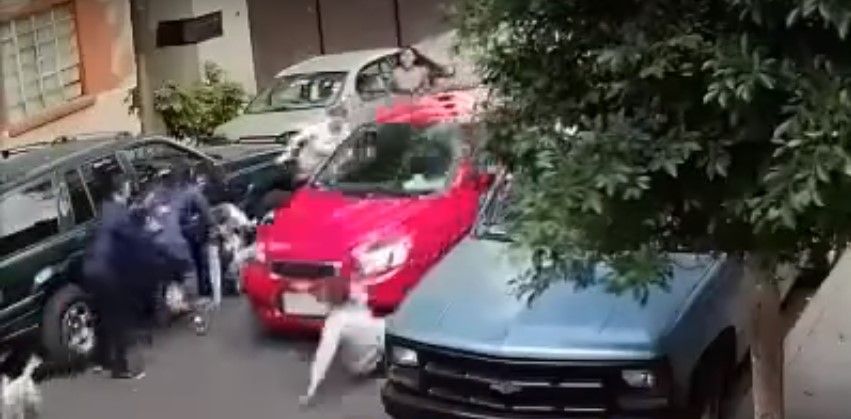 Una cámara de vigilancia instalada en calles de Azcapotzalco fue la que grabó la agresión del automovilista contra un grupo de personas, luego de una discusión familiar.