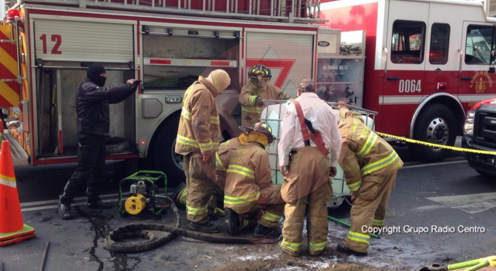 Un contenedor con sosa cáustica líquida cayó de una camioneta en Eje 5 Sur Eugenia, al cruce con avenida Insurgentes en la colonia Del Valle.