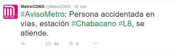 A través de su cuenta en la red social Twitter, @MetroCDMX, este medio de transporte informó que se atendió a la persona accidentada este lunes en la línea que corre de Garibaldi a Constitución de 1917.