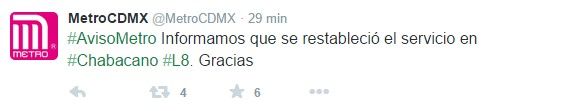 Una vez que se retiró el cuerpo, el Metro indicó que se restableció el servicio en esa estación de transborde entre las líneas 8, 2 y 9.