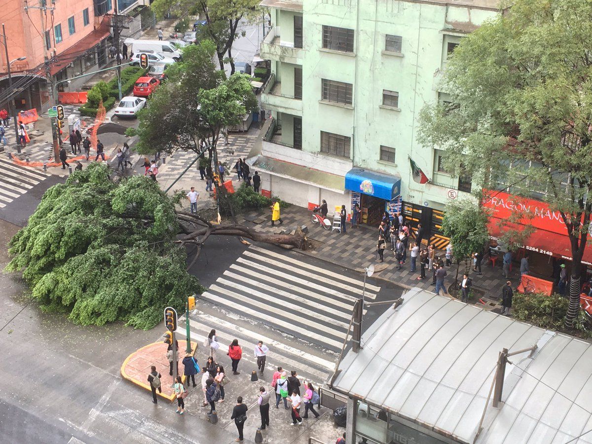 #Bloqueado Insurgentes sur a la altura del #Metrobús Nuevo León, en ambos sentidos. Árbol caído. pic.twitter.com/oGivLbH2UK