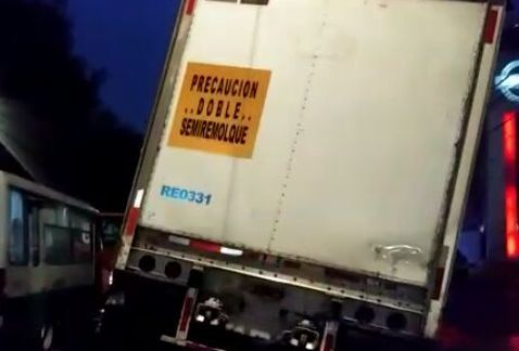 Un chófer de un tráiler que transportaba cerveza de la empresa Corona intentó desmontar la caja y estacionar el remolque, sin embargo, falló en su intento y el contenedor terminó yéndose de lado.