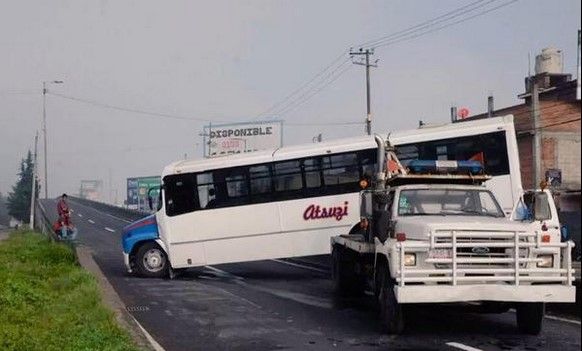 Aproximadamente a las 09:30 h del día de hoy, la lluvia y neblina de las primeras horas provocaron que un autobús de pasajeros, que presuntamente iba a exceso de velocidad, perdiera el control y quedara atorado a la subida de un puente vehicular en los carriles laterales de Paseo Tollocan, en la ciudad de Toluca.
