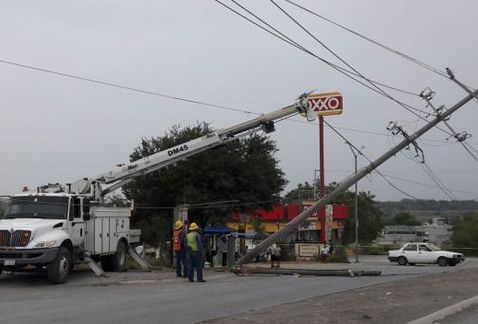 Dos postes fueron derribados por un camión de la ruta 72 que chocó contra ellos en el municipio de Juárez en el estado de Nuevo León. Una de las estructuras era de la CFE y la otra de Telmex.