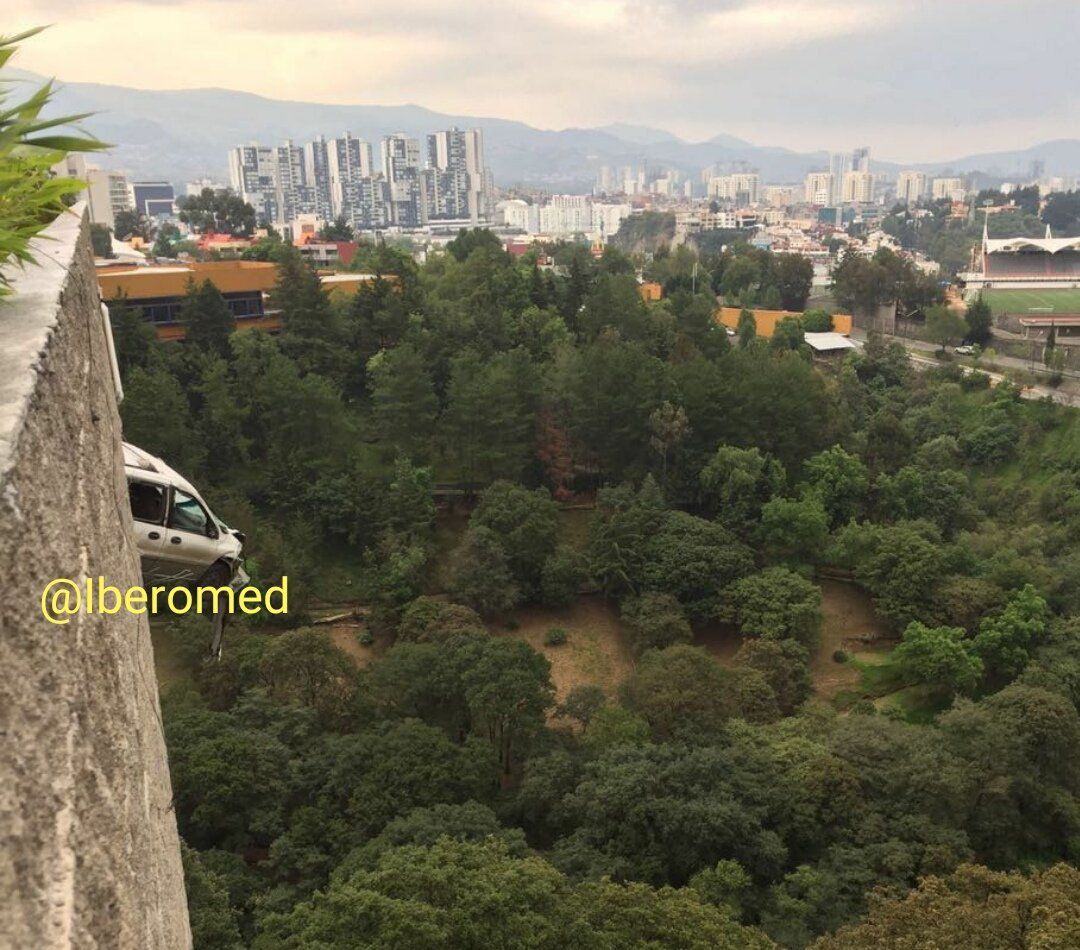 Una camioneta quedó a punto de caer desde un estacionamiento ubicado en Bosque de las Lomas, delegación Cuajimalpa. Presuntamente el incidente se debe a que la camioneta se quedó sin frenos.