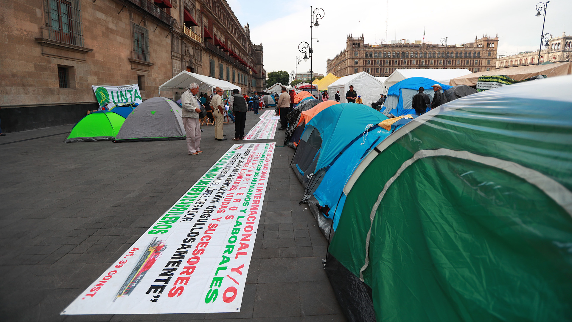 Este paro indefinido llega después de que este lunes se iniciara una marcha desde el Monumento a Revolución al Palacio Nacional, que es desde hace unos días centro de operaciones y también residencia del presidente.