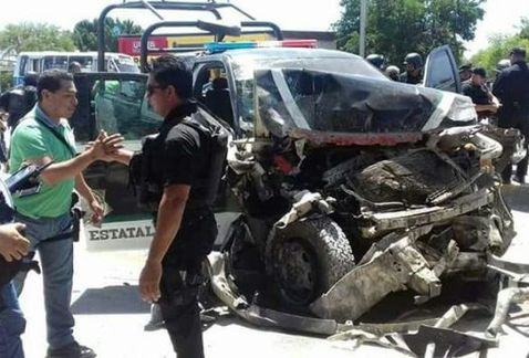 Fueron los elementos de la Policía Estatal quienes se llevaron la peor parte durante el accidente, pues cayeron de la caja de la patrulla